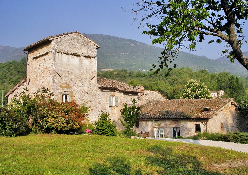 This former Post House in the Appenines was a refreshment stop on the old road from Umbria to the Marches, where travellers could rest their horses and themselves. It is a fortified tower house and has been partly restored. The structure is sound and the roof repaired. The first floor has plenty of living space and four bedrooms. There’s a separate apartment on the next level, accessible by interior and exterior staircases, and there is a room – with a view – in the tower. The property comes with 3 acres of land, plus another field a little further off.