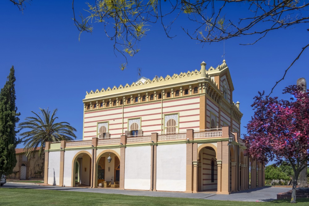 In a traditional fishing port 40 minutes from Barcelona, and close to sizzling Sitges, this palace is certainly Moorish. Its airy, high-ceilinged rooms are decorated with intricate patterns and motifs. Doorways and windows are built with horseshoe arches and the ceilings are covered in frescoes. The Sultan master suite is on the second floor, with sea views, and there are seven other bedrooms plus a guesthouse. Beyond the terrace, there are manicured lawns, a heated pool, a walled garden and a pond.