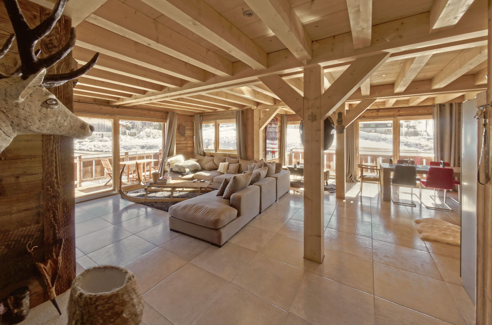 This little French town has a cable car connecting it to the ski areas of the Grande Massif, which has 145 slopes, with 265km of ski runs for all abilities. There is also a children’s village to entertain the under-10s, with an ice rink and sledge runs for the bold. This chalet sits directly opposite the cable car and has a dramatic two-storey, open plan living area. The master suite is on the top floor and there are seven other bedrooms, all en-suite. There is also a separate one-bed apartment.