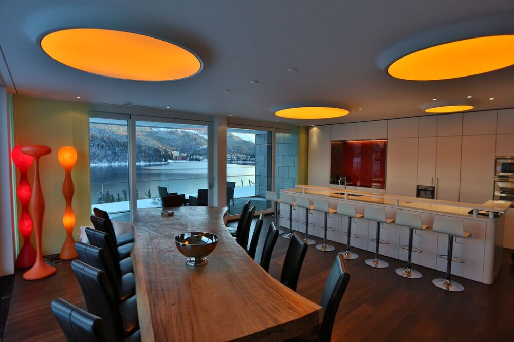 Chic and cosmopolitan, St Moritz is one of the most expensive ski resorts in the world. Its mineral springs made it popular with visitors as early as the 16th century. The owner of the Badrutts Palace Hotel helped start the craze for winter sports before 1900. The hotel is still going strong and, right next door, this duplex in Apartment Staz overlooks the lake. It is 100m to the town centre and close to the slopes. There are five bedrooms and two terraces.