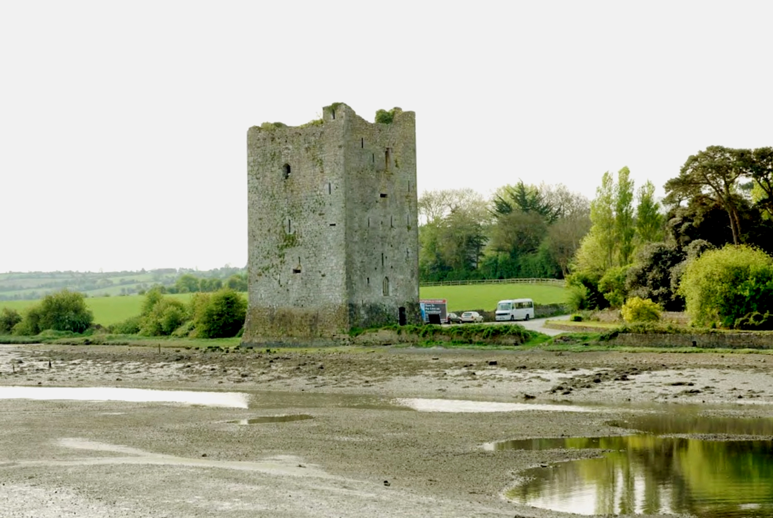 On the foreshore at Belvelly, overlooking Fota Island, this medieval tower house has planning permission for a full restoration. It is 80ft tall, with a spiral stone staircase, mullioned windows, battlements and ancient recesses. There is a boatslip to the estuary and a quarter of an acre of land.